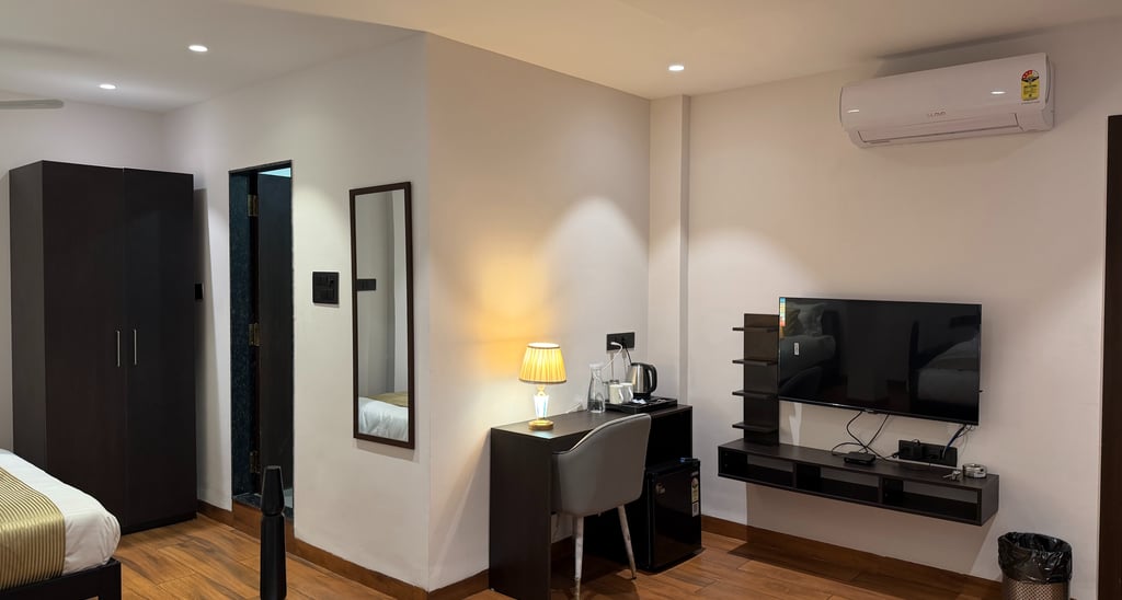 Our rooms offer plush bedding and smart amenities, all situated in a vibrant, convenient neighborhood in Indore near Bombay Hospital.